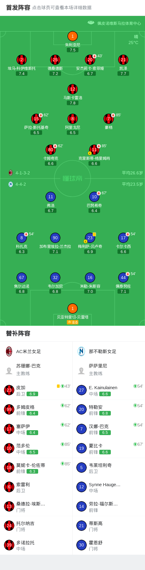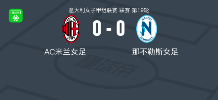 AC米兰女足0-0那不勒斯女足,势均力敌 足球资讯 发布时间: 2026年4月26日 阅读时间: 少于1 分钟 FacebookXPinterestWhatsApp AC米兰女足0-0那不勒斯女足,势均力敌 北京时间4月25日意大利女子甲组联赛 联赛 第19轮,AC米兰女足主场对阵那不勒斯女足。最终比分AC米兰女足 0–0 那不勒斯女足。 点击查看本场比赛详细数据>> 点击查看意女甲完整积分榜>> 球队阵容 技术统计 FacebookXPinterestWhatsApp 1823100https://1823100.com 红单推荐 021 西甲 奥萨苏纳vs塞维利亚 红单推荐 2026年4月26日 013 英足总杯 切尔西(中)vs利兹联 红单推荐 2026年4月26日 023 英超 阿森纳vs纽卡斯尔 红单推荐 2026年4月25日 016 英超 狼队vs热刺 红单推荐 2026年4月25日 013 英超 桑德兰vs诺丁汉 红单推荐 2026年4月24日 热门资讯 官方:贺希宁当选本赛季CBA常规赛MVP 篮球资讯 2026年4月26日 马竞官方:巴里奥斯左大腿肌肉受伤,回归时间取决于恢复情况 足球资讯 2026年4月26日 阿贾克斯女足0-0费耶诺德女足,秋色平分 足球资讯 2026年4月26日 阿拉德纺织厂0-0康斯坦察灯塔,平分秋色 足球资讯 2026年4月26日 CBA最佳国际球员阵容:史密斯、迪亚洛、韦瑟斯庞、米奇、达卡里 篮球资讯 2026年4月26日