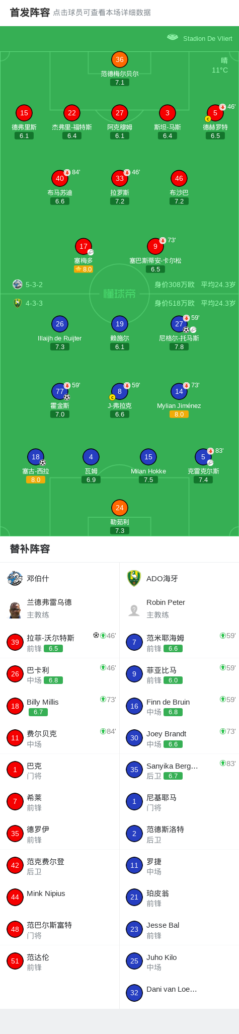 ADO海牙3-1邓伯什,尼格尔-托马斯传射,霍金斯破门