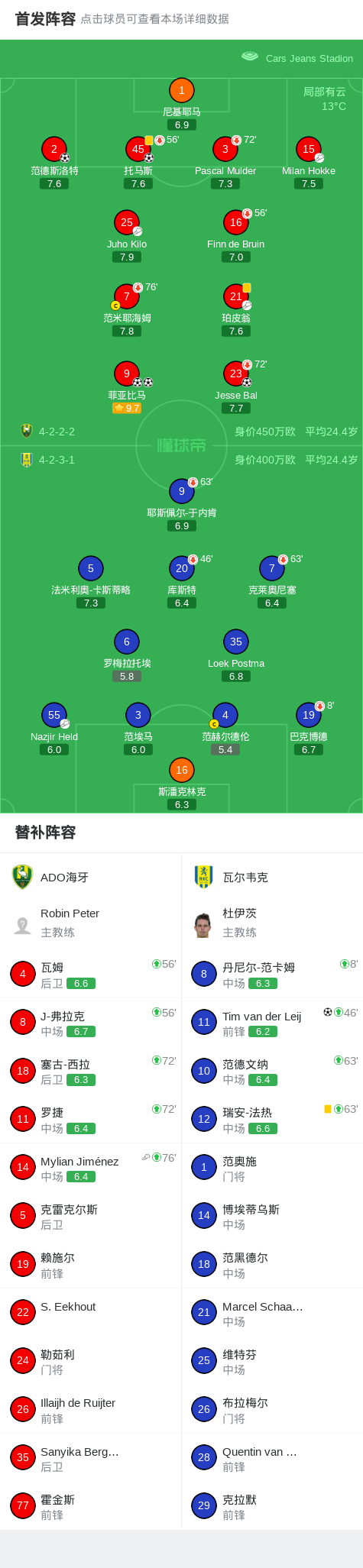 ADO海牙5-1大胜瓦尔韦克,菲亚比马双响,Jesse Bal建功