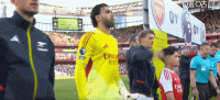 第28分钟,萨卡在场边热身,球迷送上掌声