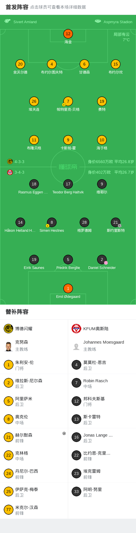 博德闪耀2-1逆转KFUM奥斯陆,赫尔默森破门