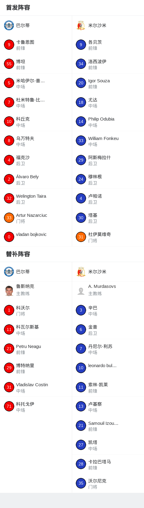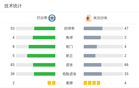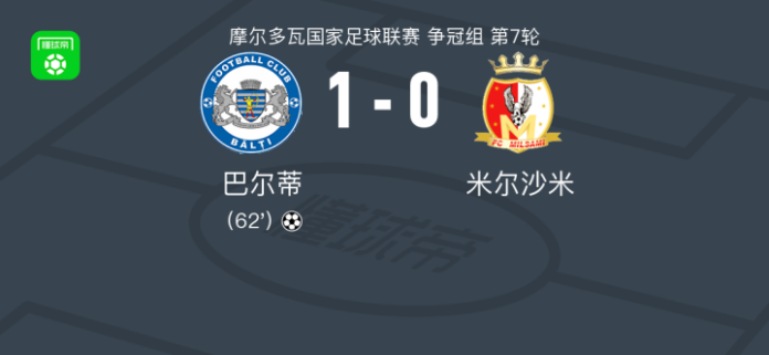 巴尔蒂1-0米尔沙米 足球资讯 发布时间: 2026年4月27日 阅读时间: 少于1 分钟 FacebookXPinterestWhatsApp 巴尔蒂1-0米尔沙米 北京时间4月26日摩尔多瓦国家足球联赛 争冠组 第7轮,巴尔蒂主场对阵米尔沙米。最终比分巴尔蒂 1–0 米尔沙米。 点击查看本场比赛详细数据>> 点击查看摩尔联完整积分榜>> 精彩瞬间 第62分钟,巴尔蒂球员打入一球。 球队阵容 技术统计 FacebookXPinterestWhatsApp 1823100https://1823100.com 红单推荐 021 西甲 奥萨苏纳vs塞维利亚 红单推荐 2026年4月26日 013 英足总杯 切尔西(中)vs利兹联 红单推荐 2026年4月26日 023 英超 阿森纳vs纽卡斯尔 红单推荐 2026年4月25日 016 英超 狼队vs热刺 红单推荐 2026年4月25日 013 英超 桑德兰vs诺丁汉 红单推荐 2026年4月24日 热门资讯 阿拉德纺织厂0-0康斯坦察灯塔,平分秋色 足球资讯 2026年4月26日 官方:贺希宁当选本赛季CBA常规赛MVP 篮球资讯 2026年4月26日 马竞官方:巴里奥斯左大腿肌肉受伤,回归时间取决于恢复情况 足球资讯 2026年4月26日 阿贾克斯女足0-0费耶诺德女足,秋色平分 足球资讯 2026年4月26日 官方:特奎维恩-史密斯当选本赛季CBA常规赛最佳国际球员 篮球资讯 2026年4月26日