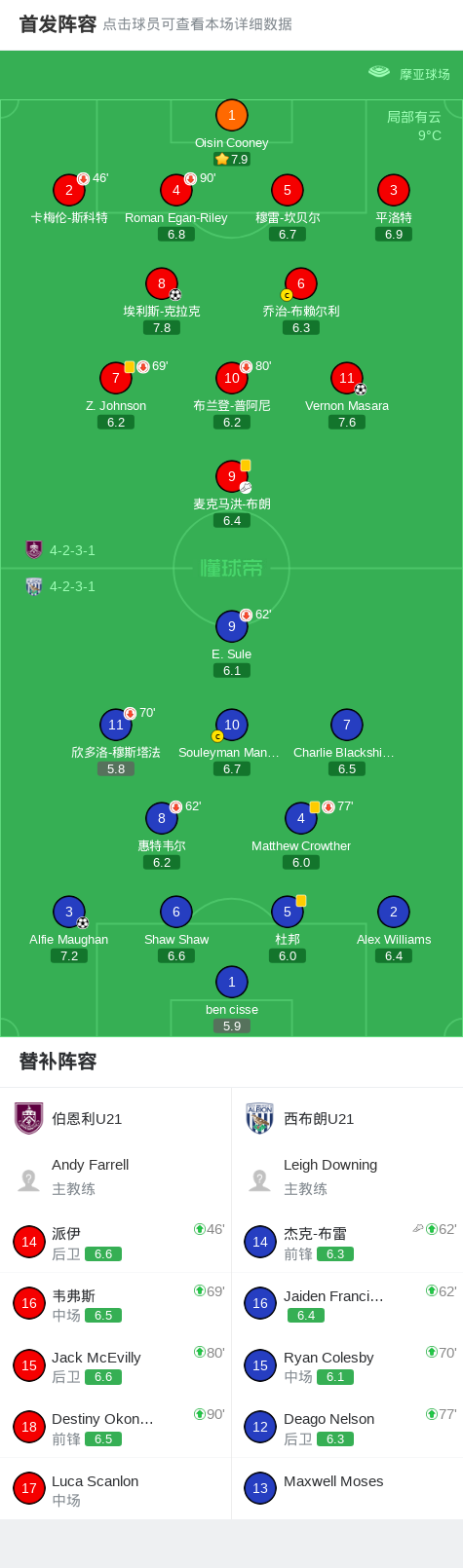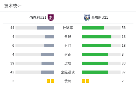 伯恩利U21 2-1西布朗U21,Vernon Masara、埃利斯-克拉克破门