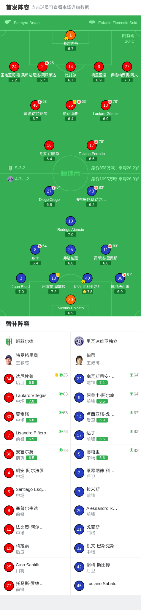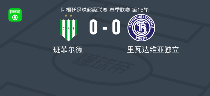 班菲尔德0-0里瓦达维亚独立,Diego Crego错失良机 足球资讯 发布时间: 2026年4月21日 阅读时间: 少于1 分钟 FacebookXPinterestWhatsApp 班菲尔德0-0里瓦达维亚独立,双方鏖战90分钟未分胜负 北京时间4月21日阿根廷足球超级联赛 春季联赛 第15轮,班菲尔德主场对阵里瓦达维亚独立。最终比分班菲尔德 0–0 里瓦达维亚独立。 点击查看本场比赛详细数据>> 点击查看阿超完整积分榜>> 球队阵容 技术统计 FacebookXPinterestWhatsApp 1823100https://1823100.com 红单推荐 001 意甲 莱切vs佛罗伦萨 红单推荐 2026年4月20日 003 英超 水晶宫vs西汉姆联 红单推荐 2026年4月20日 019 英超 曼城vs阿森纳 红单推荐 2026年4月19日 007 英冠 伊普斯维奇vs米德尔斯堡 红单推荐 2026年4月19日 009 挪超 博德闪耀vs奥勒松 红单推荐 2026年4月18日 热门资讯 雷帕斯3-2逆转基芬,oliver helttunen、Timur Saltykov破门 足球资讯 2026年4月19日 001 欧联杯 塞尔塔vs弗莱堡 红单推荐 2026年4月16日 002 欧联 诺丁汉vs波尔图 红单推荐 2026年4月16日 铁人文明观赛倡议书:同心兴东北,场上是对手,场下是兄弟 足球资讯 2026年4月20日 足球报:深圳青年人靠“亲情牌”签下了罗德里格与梁诺恒 足球资讯 2026年4月20日