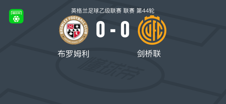 布罗姆利0-0剑桥联,平分秋色 足球资讯 发布时间: 2026年4月17日 阅读时间: 少于1 分钟 FacebookXPinterestWhatsApp 布罗姆利0-0剑桥联,平分秋色 北京时间4月17日英格兰足球乙级联赛 联赛 第44轮,布罗姆利主场对阵剑桥联。最终比分布罗姆利 0–0 剑桥联。 点击查看本场比赛详细数据>> 点击查看英乙完整积分榜>> 球队阵容 技术统计 FacebookXPinterestWhatsApp 1823100https://1823100.com 红单推荐 001 意甲 莱切vs佛罗伦萨 红单推荐 2026年4月20日 003 英超 水晶宫vs西汉姆联 红单推荐 2026年4月20日 019 英超 曼城vs阿森纳 红单推荐 2026年4月19日 007 英冠 伊普斯维奇vs米德尔斯堡 红单推荐 2026年4月19日 009 挪超 博德闪耀vs奥勒松 红单推荐 2026年4月18日 热门资讯 001 欧联杯 塞尔塔vs弗莱堡 红单推荐 2026年4月16日 雷帕斯3-2逆转基芬,oliver helttunen、Timur Saltykov破门 足球资讯 2026年4月19日 002 欧联 诺丁汉vs波尔图 红单推荐 2026年4月16日 铁人文明观赛倡议书:同心兴东北,场上是对手,场下是兄弟 足球资讯 2026年4月20日 足球报:深圳青年人靠“亲情牌”签下了罗德里格与梁诺恒 足球资讯 2026年4月20日