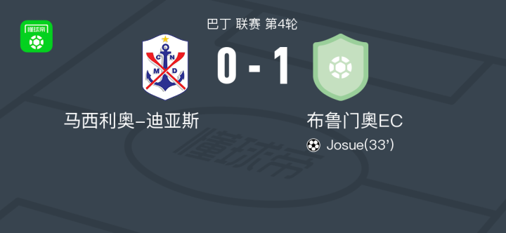 布鲁门奧EC1-0马西利奥-迪亚斯,Josue一击制胜 足球资讯 发布时间: 2026年4月26日 阅读时间: 少于1 分钟 FacebookXPinterestWhatsApp 布鲁门奧EC1-0马西利奥-迪亚斯,Josue一击制胜 北京时间4月26日巴丁 联赛 第4轮,马西利奥-迪亚斯主场对阵布鲁门奧EC。布鲁门奧ECJosue破门。最终比分马西利奥-迪亚斯 0–1 布鲁门奧EC。 点击查看本场比赛详细数据>> 精彩瞬间 第33分钟,布鲁门奧EC球员Josue打入一球。 技术统计 FacebookXPinterestWhatsApp 1823100https://1823100.com 红单推荐 023 英超 阿森纳vs纽卡斯尔 红单推荐 2026年4月25日 016 英超 狼队vs热刺 红单推荐 2026年4月25日 013 英超 桑德兰vs诺丁汉 红单推荐 2026年4月24日 014 西甲 贝蒂斯vs皇马 红单推荐 2026年4月24日 005 西甲 巴列卡诺vs西班牙人 红单推荐 2026年4月23日 热门资讯 三人20+!火箭21分逆转太阳7连胜 KD24分阿门22+11+8 篮球资讯 2026年4月8日 001 意甲 莱切vs佛罗伦萨 红单推荐 2026年4月20日 约基奇第198次三双!掘金大胜灰熊豪取10连胜 穆雷26+7+5 篮球资讯 2026年4月9日 003 英超 水晶宫vs西汉姆联 红单推荐 2026年4月20日 016 英超 狼队vs热刺 红单推荐 2026年4月25日