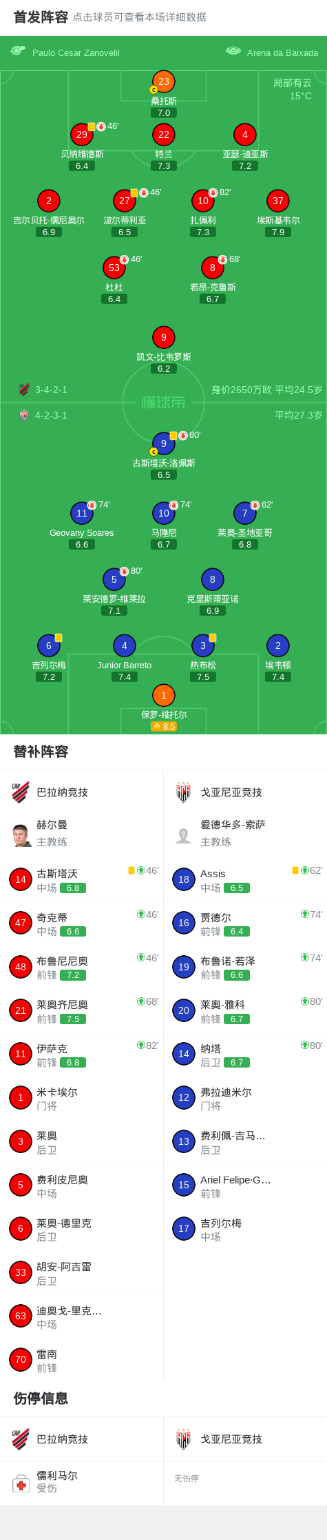 巴拉纳竞技0-0戈亚尼亚竞技,势均力敌 足球资讯 发布时间: 2026年4月24日 阅读时间: 少于1 分钟 FacebookXPinterestWhatsApp 巴拉纳竞技0-0戈亚尼亚竞技,势均力敌 北京时间4月24日巴西足球杯赛 第五轮首回合,巴拉纳竞技对阵戈亚尼亚竞技。最终比分巴拉纳竞技 0–0 戈亚尼亚竞技。 点击查看本场比赛详细数据>> 点击查看巴西杯完整积分榜>> 球队阵容 技术统计 FacebookXPinterestWhatsApp 1823100https://1823100.com 红单推荐 021 西甲 奥萨苏纳vs塞维利亚 红单推荐 2026年4月26日 013 英足总杯 切尔西(中)vs利兹联 红单推荐 2026年4月26日 023 英超 阿森纳vs纽卡斯尔 红单推荐 2026年4月25日 016 英超 狼队vs热刺 红单推荐 2026年4月25日 013 英超 桑德兰vs诺丁汉 红单推荐 2026年4月24日 热门资讯 官方:贺希宁当选本赛季CBA常规赛MVP 篮球资讯 2026年4月26日 阿拉德纺织厂0-0康斯坦察灯塔,平分秋色 足球资讯 2026年4月26日 马竞官方:巴里奥斯左大腿肌肉受伤,回归时间取决于恢复情况 足球资讯 2026年4月26日 阿贾克斯女足0-0费耶诺德女足,秋色平分 足球资讯 2026年4月26日 官方:上海队主帅卢伟当选本赛季CBA常规赛最佳教练员 篮球资讯 2026年4月26日