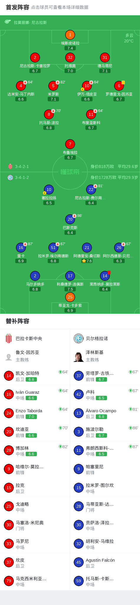 北京时间4月21日阿根廷足球超级联赛 春季联赛 第15轮,巴拉卡斯中央主场对阵贝尔格拉诺。最终比分巴拉卡斯中央 00 贝尔格拉诺。