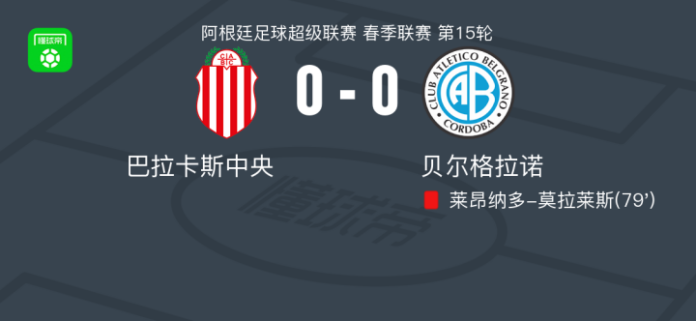 第79分钟,贝尔格拉诺球队莱昂纳多-莫拉莱斯吃到红牌。