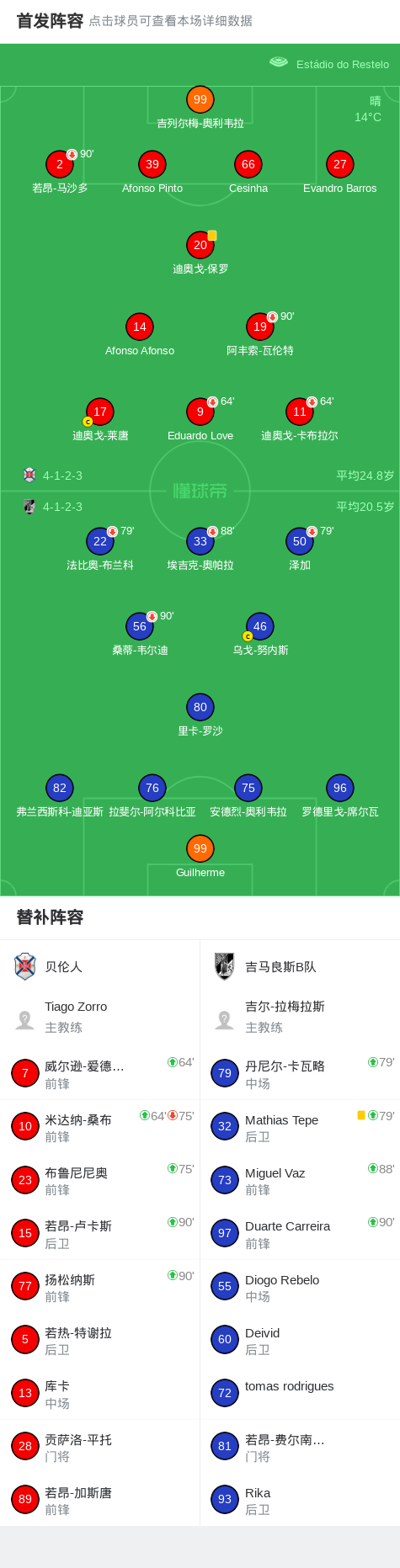 贝伦人0-0吉马良斯B队,双方鏖战90分钟未分胜负 足球资讯 发布时间: 2026年4月12日 阅读时间: 少于1 分钟 FacebookXPinterestWhatsApp 贝伦人0-0吉马良斯B队,双方鏖战90分钟未分胜负 北京时间4月12日葡萄牙足球乙级联赛 升级组 第9轮,贝伦人主场对阵吉马良斯B队。最终比分贝伦人 0–0 吉马良斯B队。 点击查看本场比赛详细数据>> 球队阵容 技术统计 FacebookXPinterestWhatsApp 1823100https://1823100.com 红单推荐 007 意杯 国际米兰vs科莫 红单推荐 2026年4月21日 005 西甲 毕尔巴鄂竞技vs奥萨苏纳 红单推荐 2026年4月21日 001 意甲 莱切vs佛罗伦萨 红单推荐 2026年4月20日 003 英超 水晶宫vs西汉姆联 红单推荐 2026年4月20日 019 英超 曼城vs阿森纳 红单推荐 2026年4月19日 热门资讯 001 欧联杯 塞尔塔vs弗莱堡 红单推荐 2026年4月16日 002 欧联 诺丁汉vs波尔图 红单推荐 2026年4月16日 001 意甲 莱切vs佛罗伦萨 红单推荐 2026年4月20日 023 英超 利物浦vs富勒姆 红单推荐 2026年4月11日 019 英超 曼城vs阿森纳 红单推荐 2026年4月19日
