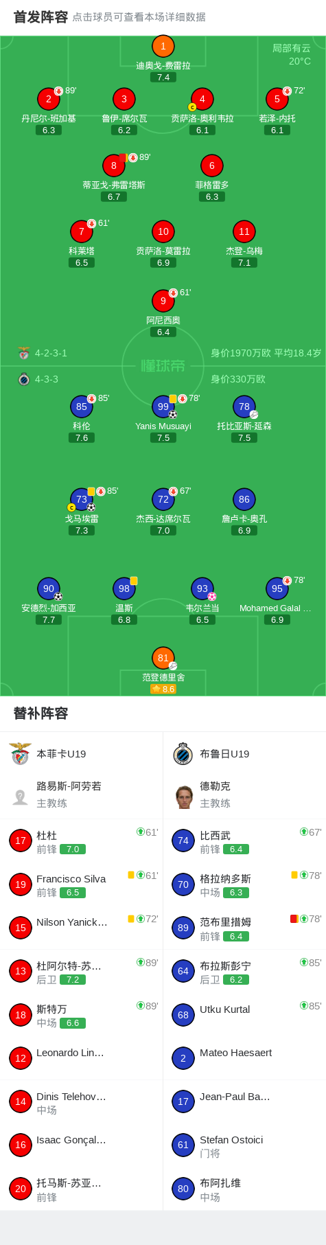 布鲁日U19 3-1本菲卡U19,Yanis Musuayi破门,安德烈-加西亚建功