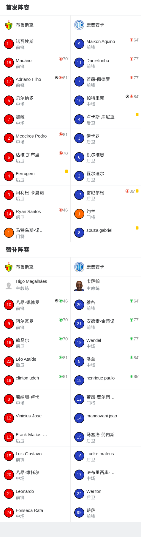 布鲁斯克2-1康费安卡,若昂-佩德罗、Adriano Filho破门