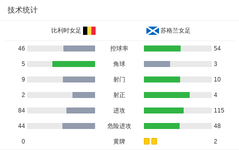 比利时女足0-0苏格兰女足,势均力敌 足球资讯 发布时间: 2026年4月19日 阅读时间: 少于1 分钟 FacebookXPinterestWhatsApp 比利时女足0-0苏格兰女足,势均力敌 北京时间4月19日世界杯女子欧洲预选赛 B联赛,比利时女足对阵苏格兰女足。最终比分比利时女足 0–0 苏格兰女足。 点击查看本场比赛详细数据>> 点击查看世女欧预完整积分榜>> 球队阵容 技术统计 FacebookXPinterestWhatsApp 1823100https://1823100.com 红单推荐 005 西甲 巴列卡诺vs西班牙人 红单推荐 2026年4月23日 003 西甲 莱万特vs塞维利亚 红单推荐 2026年4月23日 015 西甲 巴萨vs塞尔塔 红单推荐 2026年4月22日 012 英超 伯恩茅斯vs利兹联 红单推荐 2026年4月22日 007 意杯 国际米兰vs科莫 红单推荐 2026年4月21日 热门资讯 萨拉戈萨U19 0-0乌德山U19,双方握手言和 足球资讯 2026年4月12日 萨拉赫安菲尔德英超进108球,联赛历史单座球场进球仅次于亨利 足球资讯 2026年4月12日 萨拉赫英超打入157粒非点球进球,追平阿圭罗列历史第五 足球资讯 2026年4月12日 郑大世:森保一执教风格很有人情味;日本队还得日本人执教 足球资讯 2026年4月23日 萨拉赫英超参与250粒非点球进球,成历史第五人 足球资讯 2026年4月12日