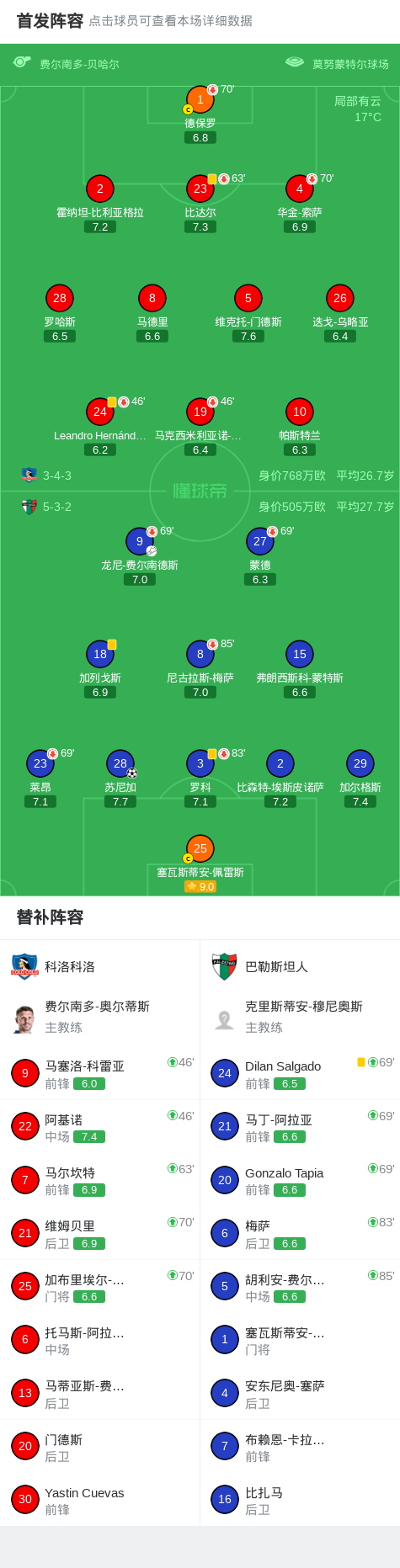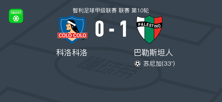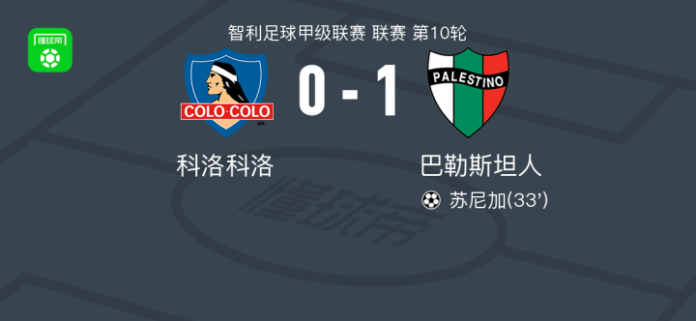 巴勒斯坦人1-0科洛科洛,苏尼加一击制胜 足球资讯 发布时间: 2026年4月20日 阅读时间: 少于1 分钟 FacebookXPinterestWhatsApp 巴勒斯坦人1-0科洛科洛,苏尼加一击制胜 北京时间4月20日智利足球甲级联赛 联赛 第10轮,科洛科洛主场对阵巴勒斯坦人。巴勒斯坦人苏尼加破门。最终比分科洛科洛 0–1 巴勒斯坦人。 点击查看本场比赛详细数据>> 点击查看智甲完整积分榜>> 精彩瞬间 第33分钟,巴勒斯坦人球员龙尼-费尔南德斯助攻苏尼加打入一球。 球队阵容 技术统计 FacebookXPinterestWhatsApp 1823100https://1823100.com 红单推荐 021 西甲 奥萨苏纳vs塞维利亚 红单推荐 2026年4月26日 013 英足总杯 切尔西(中)vs利兹联 红单推荐 2026年4月26日 023 英超 阿森纳vs纽卡斯尔 红单推荐 2026年4月25日 016 英超 狼队vs热刺 红单推荐 2026年4月25日 013 英超 桑德兰vs诺丁汉 红单推荐 2026年4月24日 热门资讯 三人20+!火箭21分逆转太阳7连胜 KD24分阿门22+11+8 篮球资讯 2026年4月8日 约基奇第198次三双!掘金大胜灰熊豪取10连胜 穆雷26+7+5 篮球资讯 2026年4月9日 003 欧冠 利物浦vs巴黎圣日耳曼 红单推荐 2026年4月14日 004 欧冠 巴萨vs马竞 红单推荐 2026年4月8日 002 欧协联 巴列卡诺vs雅典AEK 红单推荐 2026年4月9日