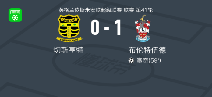 布伦特伍德1-0切斯亨特,塞奇制胜 足球资讯 发布时间: 2026年4月19日 阅读时间: 少于1 分钟 FacebookXPinterestWhatsApp 布伦特伍德1-0切斯亨特,塞奇制胜 北京时间4月18日英格兰依斯米安联超级联赛 联赛 第41轮,切斯亨特主场对阵布伦特伍德。布伦特伍德塞奇破门。最终比分切斯亨特 0–1 布伦特伍德。 点击查看本场比赛详细数据>> 精彩瞬间 第59分钟,布伦特伍德球员塞奇打入一球。 FacebookXPinterestWhatsApp 1823100https://1823100.com 红单推荐 013 英超 桑德兰vs诺丁汉 红单推荐 2026年4月24日 014 西甲 贝蒂斯vs皇马 红单推荐 2026年4月24日 005 西甲 巴列卡诺vs西班牙人 红单推荐 2026年4月23日 003 西甲 莱万特vs塞维利亚 红单推荐 2026年4月23日 015 西甲 巴萨vs塞尔塔 红单推荐 2026年4月22日 热门资讯 023 英超 利物浦vs富勒姆 红单推荐 2026年4月11日 005 英超 曼联vs利兹联 红单推荐 2026年4月13日 012 英超 诺丁汉森林vs阿斯顿维拉 红单推荐 2026年4月12日 001 欧联杯 塞尔塔vs弗莱堡 红单推荐 2026年4月16日 002 欧联 诺丁汉vs波尔图 红单推荐 2026年4月16日