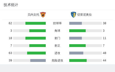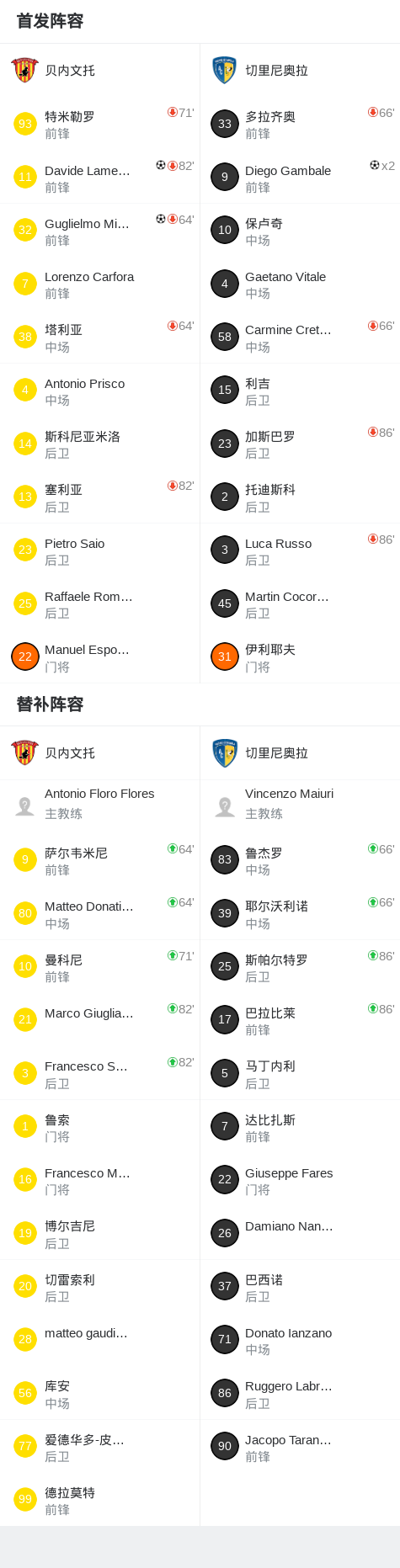 第52分钟,贝内文托球员Davide Lamesta打入一球。