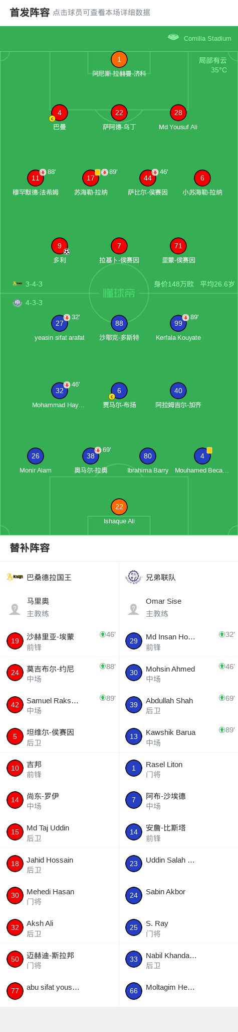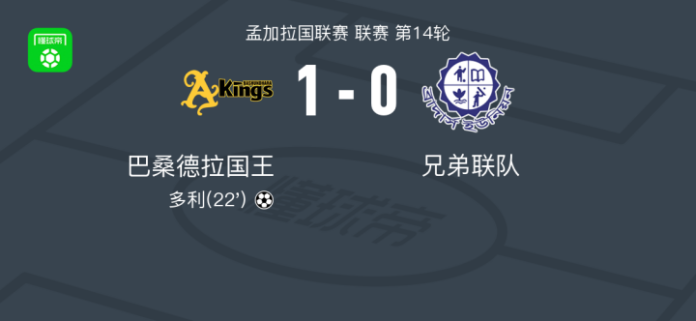 巴桑德拉国王1-0兄弟联队,多利制胜球 足球资讯 发布时间: 2026年4月25日 阅读时间: 少于1 分钟 FacebookXPinterestWhatsApp 巴桑德拉国王1-0兄弟联队,多利制胜球 北京时间4月25日孟加拉国联赛 联赛 第14轮,巴桑德拉国王主场对阵兄弟联队。巴桑德拉国王多利破门。最终比分巴桑德拉国王 1–0 兄弟联队。 点击查看本场比赛详细数据>> 精彩瞬间 第22分钟,巴桑德拉国王球员多利打入一球。 球队阵容 技术统计 FacebookXPinterestWhatsApp 1823100https://1823100.com 红单推荐 023 英超 阿森纳vs纽卡斯尔 红单推荐 2026年4月25日 016 英超 狼队vs热刺 红单推荐 2026年4月25日 013 英超 桑德兰vs诺丁汉 红单推荐 2026年4月24日 014 西甲 贝蒂斯vs皇马 红单推荐 2026年4月24日 005 西甲 巴列卡诺vs西班牙人 红单推荐 2026年4月23日 热门资讯 012 英超 诺丁汉森林vs阿斯顿维拉 红单推荐 2026年4月12日 001 欧联杯 塞尔塔vs弗莱堡 红单推荐 2026年4月16日 014 西甲 贝蒂斯vs皇马 红单推荐 2026年4月24日 002 欧联 诺丁汉vs波尔图 红单推荐 2026年4月16日 三人20+!火箭21分逆转太阳7连胜 KD24分阿门22+11+8 篮球资讯 2026年4月8日
