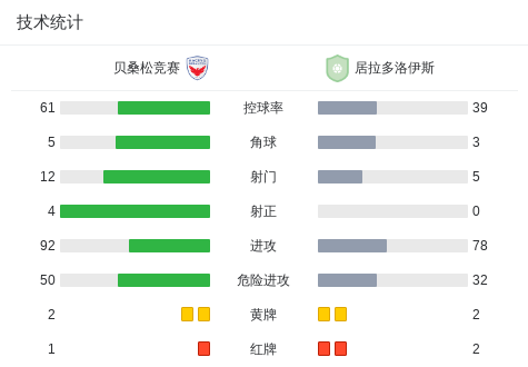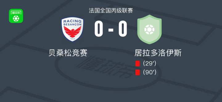 贝桑松竞赛0-0居拉多洛伊斯,秋色平分 足球资讯 发布时间: 2026年4月19日 阅读时间: 少于1 分钟 FacebookXPinterestWhatsApp 贝桑松竞赛0-0居拉多洛伊斯,秋色平分 北京时间4月19日法国全国丙级联赛,贝桑松竞赛对阵居拉多洛伊斯。最终比分贝桑松竞赛 0–0 居拉多洛伊斯。 点击查看本场比赛详细数据>> 精彩瞬间 第29分钟,居拉多洛伊斯球队吃到红牌。 第90分钟,居拉多洛伊斯球队吃到红牌。 技术统计 FacebookXPinterestWhatsApp 1823100https://1823100.com 红单推荐 023 英超 阿森纳vs纽卡斯尔 红单推荐 2026年4月25日 016 英超 狼队vs热刺 红单推荐 2026年4月25日 013 英超 桑德兰vs诺丁汉 红单推荐 2026年4月24日 014 西甲 贝蒂斯vs皇马 红单推荐 2026年4月24日 005 西甲 巴列卡诺vs西班牙人 红单推荐 2026年4月23日 热门资讯 012 英超 诺丁汉森林vs阿斯顿维拉 红单推荐 2026年4月12日 001 欧联杯 塞尔塔vs弗莱堡 红单推荐 2026年4月16日 002 欧联 诺丁汉vs波尔图 红单推荐 2026年4月16日 三人20+!火箭21分逆转太阳7连胜 KD24分阿门22+11+8 篮球资讯 2026年4月8日 约基奇第198次三双!掘金大胜灰熊豪取10连胜 穆雷26+7+5 篮球资讯 2026年4月9日