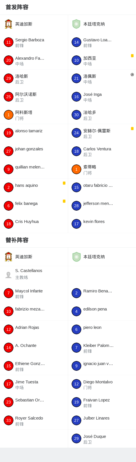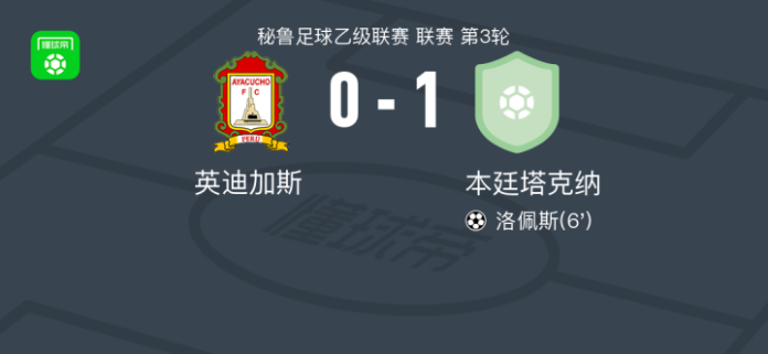 本廷塔克纳1-0英迪加斯,洛佩斯一剑封喉 足球资讯 发布时间: 2026年4月19日 阅读时间: 少于1 分钟 FacebookXPinterestWhatsApp 本廷塔克纳1-0英迪加斯,洛佩斯一剑封喉 北京时间4月19日秘鲁足球乙级联赛 联赛 第3轮,英迪加斯主场对阵本廷塔克纳。本廷塔克纳洛佩斯破门。最终比分英迪加斯 0–1 本廷塔克纳。 点击查看本场比赛详细数据>> 精彩瞬间 第6分钟,本廷塔克纳球员洛佩斯打入一球。 球队阵容 技术统计 FacebookXPinterestWhatsApp 1823100https://1823100.com 红单推荐 015 西甲 巴萨vs塞尔塔 红单推荐 2026年4月22日 012 英超 伯恩茅斯vs利兹联 红单推荐 2026年4月22日 007 意杯 国际米兰vs科莫 红单推荐 2026年4月21日 005 西甲 毕尔巴鄂竞技vs奥萨苏纳 红单推荐 2026年4月21日 001 意甲 莱切vs佛罗伦萨 红单推荐 2026年4月20日 热门资讯 萨拉戈萨U19 0-0乌德山U19,双方握手言和 足球资讯 2026年4月12日 克莱普尔1-0巴拉卡斯体育,Aaron Caraballo一锤定音 足球资讯 2026年4月13日 007 英冠 伊普斯维奇vs米德尔斯堡 红单推荐 2026年4月19日 019 英超 曼城vs阿森纳 红单推荐 2026年4月19日 萨拉赫安菲尔德英超进108球,联赛历史单座球场进球仅次于亨利 足球资讯 2026年4月12日
