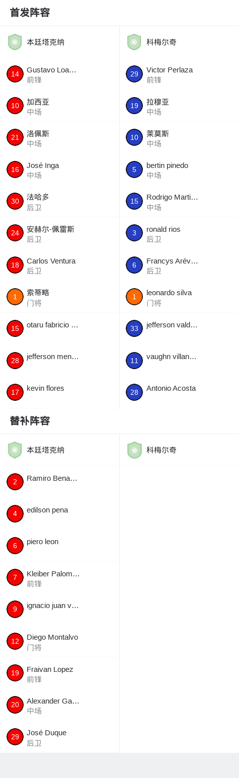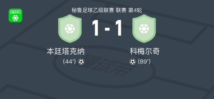 北京时间4月27日秘鲁足球乙级联赛 联赛 第4轮,本廷塔克纳主场对阵科梅尔奇。最终比分本廷塔克纳 1–1 科梅尔奇。