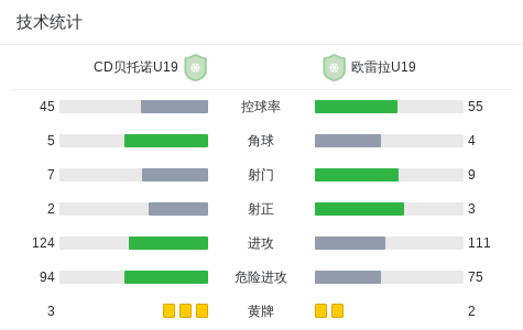 CD贝托诺U19 0-0欧雷拉U19,双方握手言和