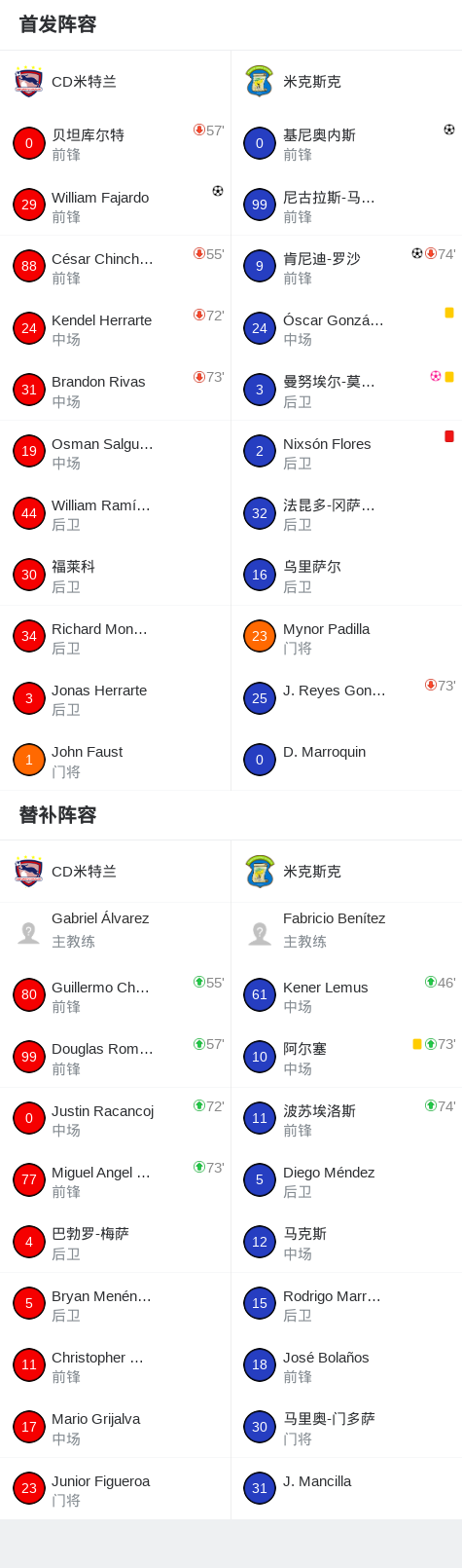 CD米特兰2-2米克斯克,William Fajardo,基尼奥内斯建功