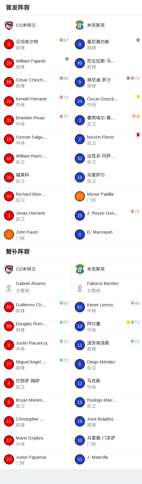 CD米特兰2-2米克斯克,William Fajardo,基尼奥内斯破门
