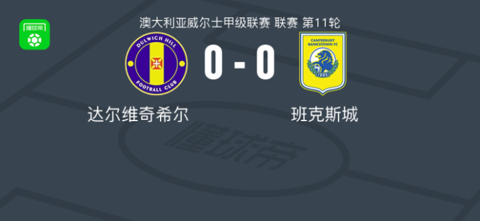 北京时间4月18日澳大利亚威尔士甲级联赛 联赛 第11轮,达尔维奇希尔主场对阵班克斯城。最终比分达尔维奇希尔 00 班克斯城。