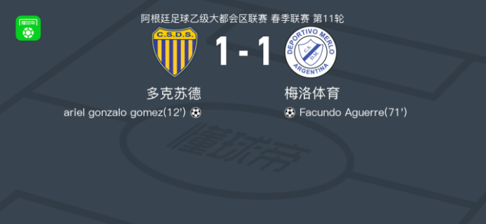 多克苏德1-1梅洛体育,ariel gonzalo gomez破门,Facundo Aguerre扳平