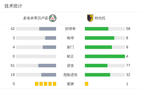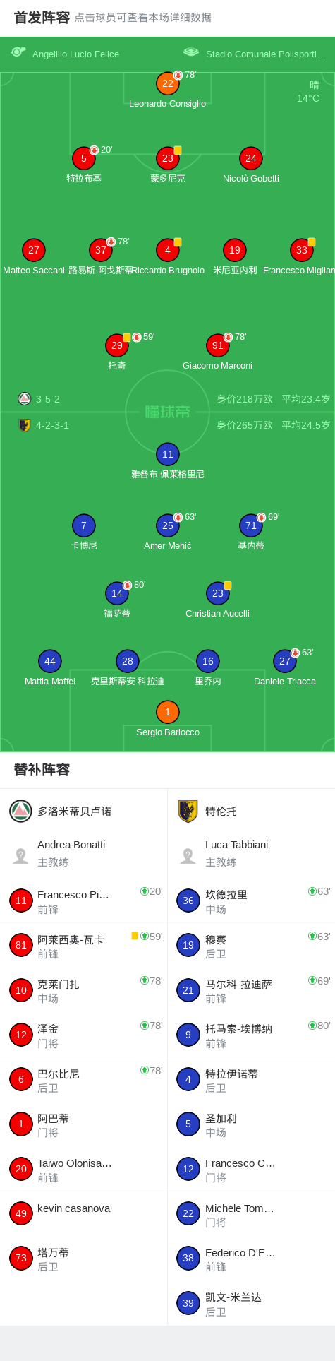多洛米蒂贝卢诺0-0特伦托,难分伯仲 足球资讯 发布时间: 2026年4月26日 阅读时间: 少于1 分钟 FacebookXPinterestWhatsApp 多洛米蒂贝卢诺0-0特伦托,难分伯仲 北京时间4月26日意大利足球丙级联赛 A组 第38轮,多洛米蒂贝卢诺主场对阵特伦托。最终比分多洛米蒂贝卢诺 0–0 特伦托。 点击查看本场比赛详细数据>> 点击查看意丙完整积分榜>> 球队阵容 技术统计 FacebookXPinterestWhatsApp 1823100https://1823100.com 红单推荐 023 英超 阿森纳vs纽卡斯尔 红单推荐 2026年4月25日 016 英超 狼队vs热刺 红单推荐 2026年4月25日 013 英超 桑德兰vs诺丁汉 红单推荐 2026年4月24日 014 西甲 贝蒂斯vs皇马 红单推荐 2026年4月24日 005 西甲 巴列卡诺vs西班牙人 红单推荐 2026年4月23日 热门资讯 016 英超 狼队vs热刺 红单推荐 2026年4月25日 023 英超 阿森纳vs纽卡斯尔 红单推荐 2026年4月25日 三人20+!火箭21分逆转太阳7连胜 KD24分阿门22+11+8 篮球资讯 2026年4月8日 013 英超 桑德兰vs诺丁汉 红单推荐 2026年4月24日 约基奇第198次三双!掘金大胜灰熊豪取10连胜 穆雷26+7+5 篮球资讯 2026年4月9日