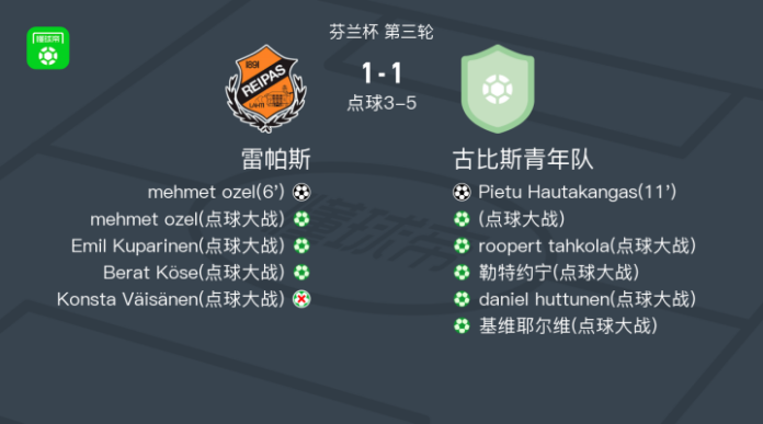 点球大战古比斯青年队6-4雷帕斯,Konsta Väisänen失点