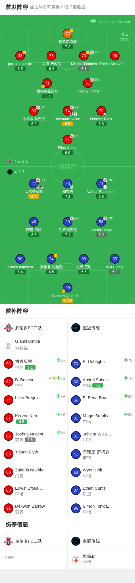 北京时间4月13日美国后备联赛,多伦多FC二队对阵皇冠传统。多伦多FC二队Jahmarie Nolan梅开二度,Fletcher Bank破门。皇冠传统贝尔奇马斯梅开二度,姆邦格破门。最终比分多伦多FC二队 4–6 皇冠传统。