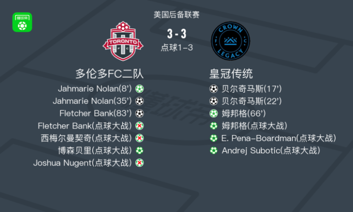 点球大战皇冠传统6-4多伦多FC二队,Joshua Nugent失点