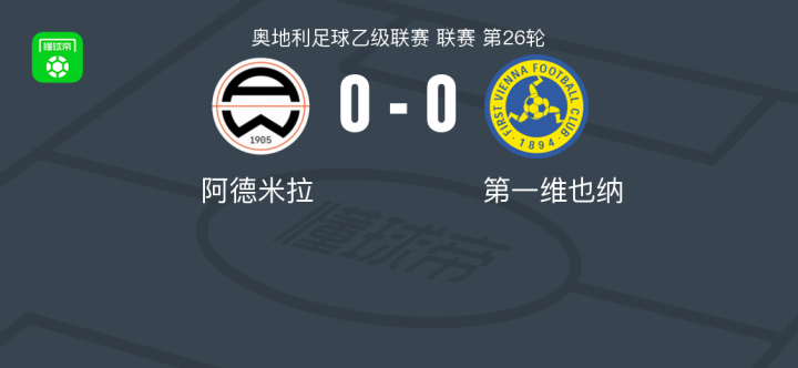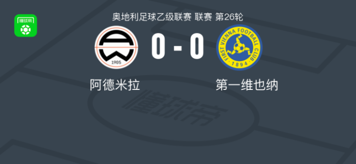 阿德米拉0-0第一维也纳,势均力敌 足球资讯 发布时间: 2026年4月18日 阅读时间: 少于1 分钟 FacebookXPinterestWhatsApp 阿德米拉0-0第一维也纳,势均力敌 北京时间4月18日奥地利足球乙级联赛 联赛 第26轮,阿德米拉主场对阵第一维也纳。最终比分阿德米拉 0–0 第一维也纳。 点击查看本场比赛详细数据>> 点击查看奥乙完整积分榜>> 球队阵容 技术统计 FacebookXPinterestWhatsApp 1823100https://1823100.com 红单推荐 005 西甲 巴列卡诺vs西班牙人 红单推荐 2026年4月23日 003 西甲 莱万特vs塞维利亚 红单推荐 2026年4月23日 015 西甲 巴萨vs塞尔塔 红单推荐 2026年4月22日 012 英超 伯恩茅斯vs利兹联 红单推荐 2026年4月22日 007 意杯 国际米兰vs科莫 红单推荐 2026年4月21日 热门资讯 萨拉戈萨U19 0-0乌德山U19,双方握手言和 足球资讯 2026年4月12日 曼撒肯0-0哈马索斯,秋色平分 足球资讯 2026年4月23日 萨拉赫安菲尔德英超进108球,联赛历史单座球场进球仅次于亨利 足球资讯 2026年4月12日 萨拉赫英超打入157粒非点球进球,追平阿圭罗列历史第五 足球资讯 2026年4月12日 郑大世:森保一执教风格很有人情味;日本队还得日本人执教 足球资讯 2026年4月23日
