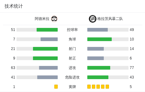 下半场补时第3分钟,阿德米拉球员里斯塔尼奇打入一球。