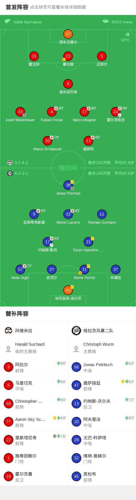 阿德米拉2-1格拉茨飓风B队,里斯塔尼奇、Josef Weberbauer破门