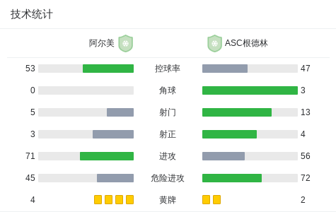 阿尔美0-0ASC根德林,场面火爆,两队6人染黄 足球资讯 发布时间: 2026年4月22日 阅读时间: 少于1 分钟 FacebookXPinterestWhatsApp 阿尔美0-0ASC根德林,场面火爆,两队6人染黄 北京时间4月22日毛里塔尼亚杯,阿尔美对阵ASC根德林。最终比分阿尔美 0–0 ASC根德林。 点击查看本场比赛详细数据>> 技术统计 FacebookXPinterestWhatsApp 1823100https://1823100.com 红单推荐 007 意杯 国际米兰vs科莫 红单推荐 2026年4月21日 005 西甲 毕尔巴鄂竞技vs奥萨苏纳 红单推荐 2026年4月21日 001 意甲 莱切vs佛罗伦萨 红单推荐 2026年4月20日 003 英超 水晶宫vs西汉姆联 红单推荐 2026年4月20日 019 英超 曼城vs阿森纳 红单推荐 2026年4月19日 热门资讯 001 意甲 莱切vs佛罗伦萨 红单推荐 2026年4月20日 023 英超 利物浦vs富勒姆 红单推荐 2026年4月11日 007 意杯 国际米兰vs科莫 红单推荐 2026年4月21日 007 英冠 伊普斯维奇vs米德尔斯堡 红单推荐 2026年4月19日 005 英超 曼联vs利兹联 红单推荐 2026年4月13日