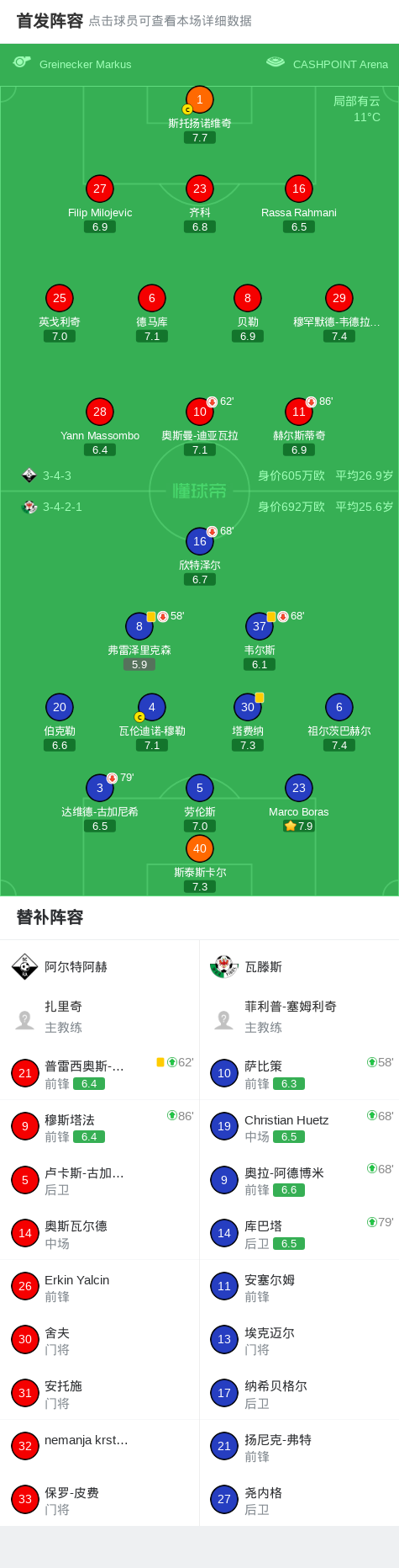 阿尔特阿赫0-0瓦滕斯,Filip Milojevic错失良机 足球资讯 发布时间: 2026年4月22日 阅读时间: 少于1 分钟 FacebookXPinterestWhatsApp 阿尔特阿赫0-0瓦滕斯,Filip Milojevic错失良机 北京时间4月22日奥地利足球超级联赛 保级组 第6轮,阿尔特阿赫主场对阵瓦滕斯。最终比分阿尔特阿赫 0–0 瓦滕斯。 点击查看本场比赛详细数据>> 点击查看奥超完整积分榜>> 球队阵容 技术统计 FacebookXPinterestWhatsApp 1823100https://1823100.com 红单推荐 007 意杯 国际米兰vs科莫 红单推荐 2026年4月21日 005 西甲 毕尔巴鄂竞技vs奥萨苏纳 红单推荐 2026年4月21日 001 意甲 莱切vs佛罗伦萨 红单推荐 2026年4月20日 003 英超 水晶宫vs西汉姆联 红单推荐 2026年4月20日 019 英超 曼城vs阿森纳 红单推荐 2026年4月19日 热门资讯 001 意甲 莱切vs佛罗伦萨 红单推荐 2026年4月20日 023 英超 利物浦vs富勒姆 红单推荐 2026年4月11日 007 英冠 伊普斯维奇vs米德尔斯堡 红单推荐 2026年4月19日 005 英超 曼联vs利兹联 红单推荐 2026年4月13日 019 英超 曼城vs阿森纳 红单推荐 2026年4月19日