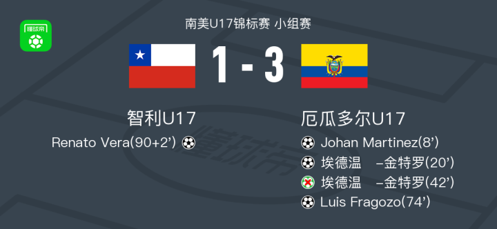 厄瓜多尔U17 3-1智利U17,Luis Fragozo、埃德温​-金特罗破门