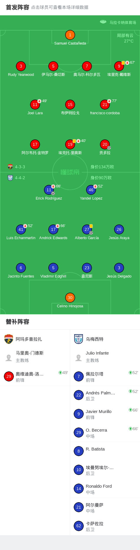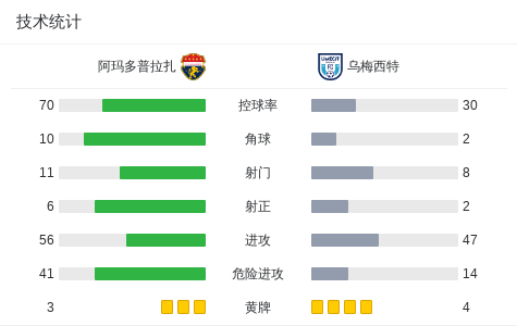 第59分钟,乌梅西特球员Erick Rodríguez打入一球。