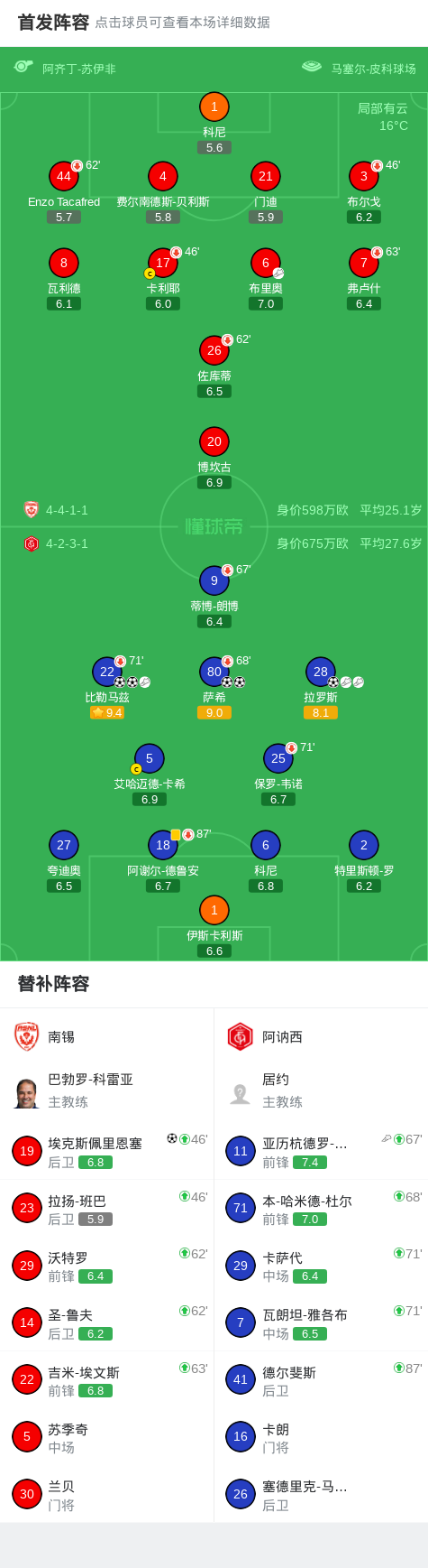 阿讷西5-1大胜南锡,萨希两球,比勒马兹两球