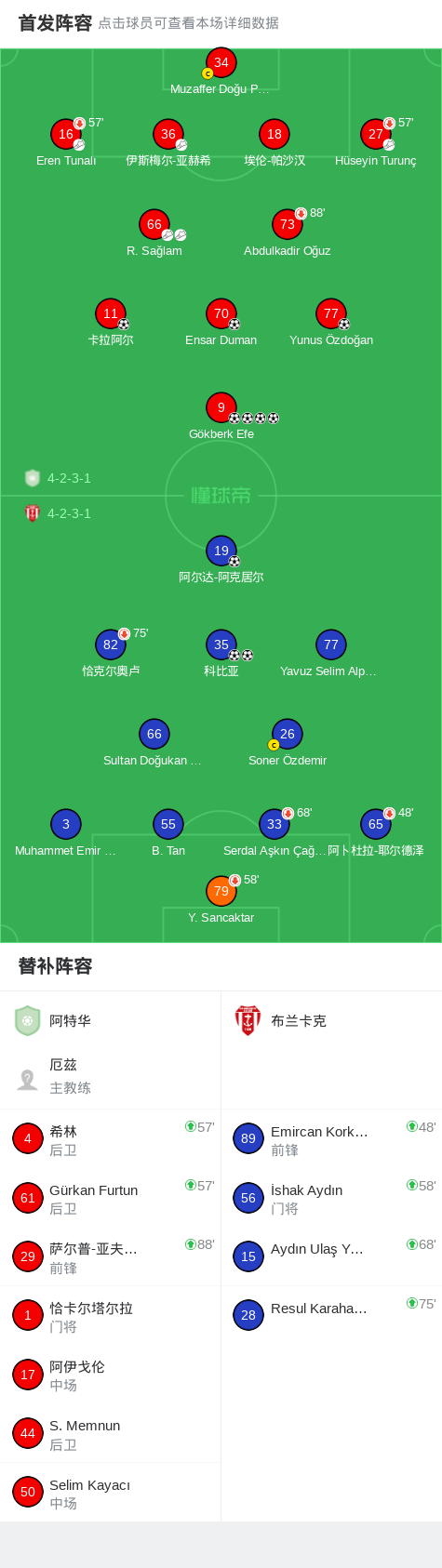 第48分钟,阿特华球员Hüseyin Turunç助攻Gökberk Efe打入一球。