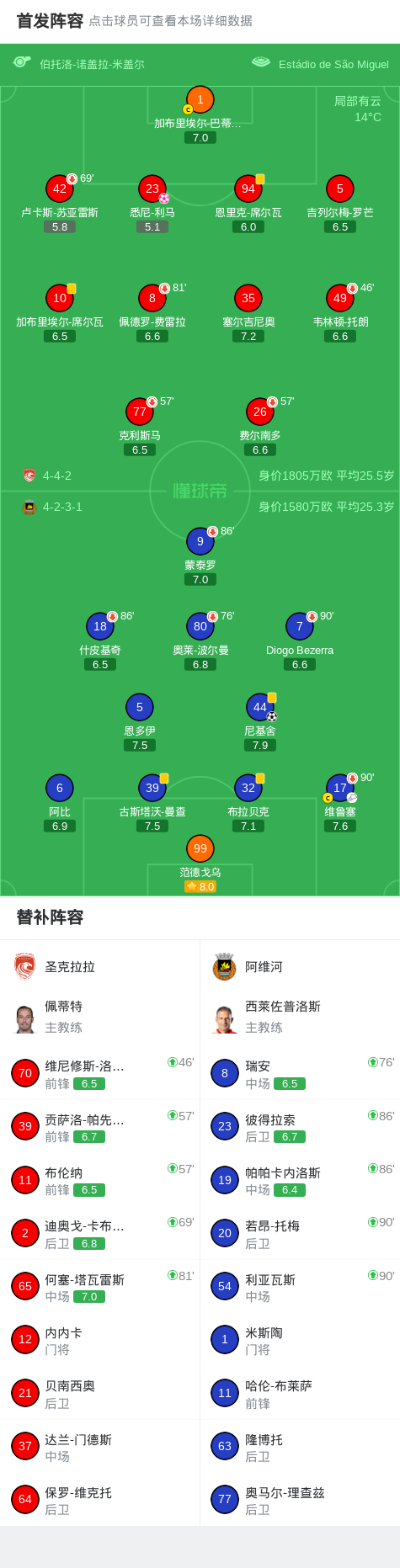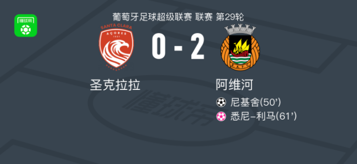 阿维河2-0圣克拉拉,尼基舍破门 足球资讯 发布时间: 2026年4月13日 阅读时间: 少于1 分钟 FacebookXPinterestWhatsApp 阿维河2-0圣克拉拉,尼基舍破门 北京时间4月12日葡萄牙足球超级联赛 联赛 第29轮,圣克拉拉主场对阵阿维河。圣克拉拉悉尼-利马自摆乌龙。阿维河尼基舍破门。最终比分圣克拉拉 0–2 阿维河。 点击查看本场比赛详细数据>> 点击查看葡超完整积分榜>> 精彩瞬间 第50分钟,阿维河球员维鲁塞助攻尼基舍打入一球。 第61分钟,圣克拉拉球员悉尼-利马自摆乌龙。 球队阵容 技术统计 FacebookXPinterestWhatsApp 1823100https://1823100.com 红单推荐 021 西甲 奥萨苏纳vs塞维利亚 红单推荐 2026年4月26日 013 英足总杯 切尔西(中)vs利兹联 红单推荐 2026年4月26日 023 英超 阿森纳vs纽卡斯尔 红单推荐 2026年4月25日 016 英超 狼队vs热刺 红单推荐 2026年4月25日 013 英超 桑德兰vs诺丁汉 红单推荐 2026年4月24日 热门资讯 约基奇第198次三双!掘金大胜灰熊豪取10连胜 穆雷26+7+5 篮球资讯 2026年4月9日 三人20+!火箭21分逆转太阳7连胜 KD24分阿门22+11+8 篮球资讯 2026年4月8日 002 欧协联 巴列卡诺vs雅典AEK 红单推荐 2026年4月9日 003 欧冠 利物浦vs巴黎圣日耳曼 红单推荐 2026年4月14日 004 欧冠 巴萨vs马竞 红单推荐 2026年4月8日