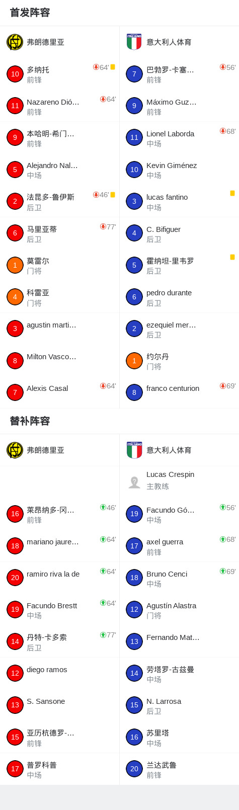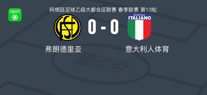 北京时间4月26日阿根廷足球乙级大都会区联赛 春季联赛 第13轮,弗朗德里亚主场对阵意大利人体育。最终比分弗朗德里亚 00 意大利人体育。
