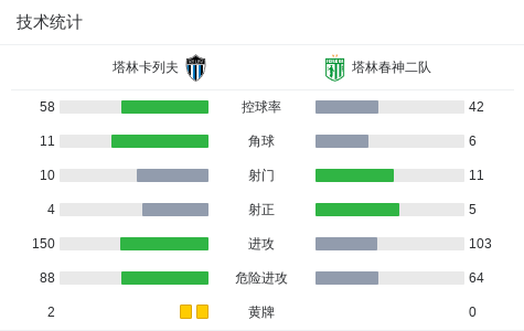 第35分钟,塔林春神二队球员安德鲁-卡雷斯打入一球。