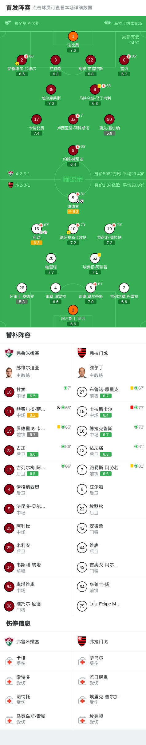 北京时间4月13日巴西足球甲级联赛 联赛 第11轮,弗鲁米嫩塞主场对阵弗拉门戈。弗鲁米嫩塞赫费尔松-萨瓦里诺破门。弗拉门戈佩德罗梅开二度。最终比分弗鲁米嫩塞 12 弗拉门戈。