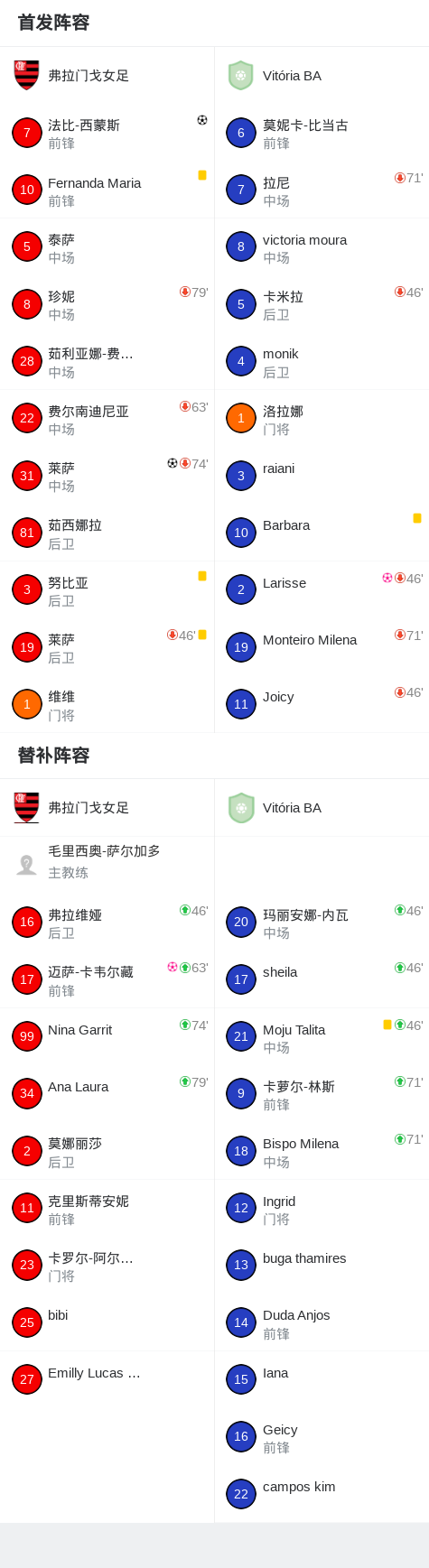 弗拉门戈女足3-1Vitória BA,法比-西蒙斯、莱萨破门
