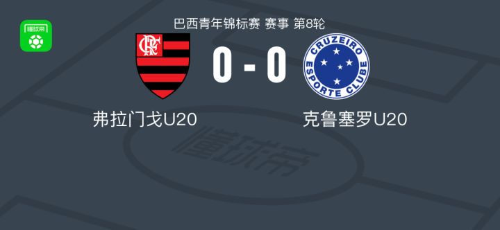 北京时间4月26日巴西青年锦标赛 赛事 第8轮,弗拉门戈U20对阵克鲁塞罗U20。最终比分弗拉门戈U20 00 克鲁塞罗U20。