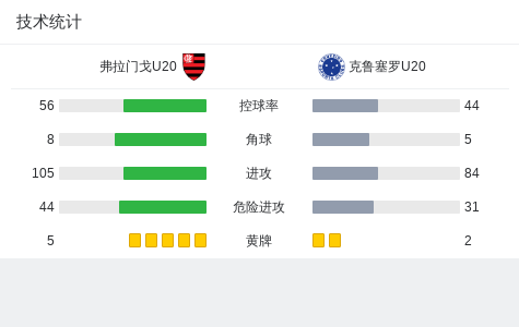弗拉门戈U20 0-0克鲁塞罗U20,难分伯仲