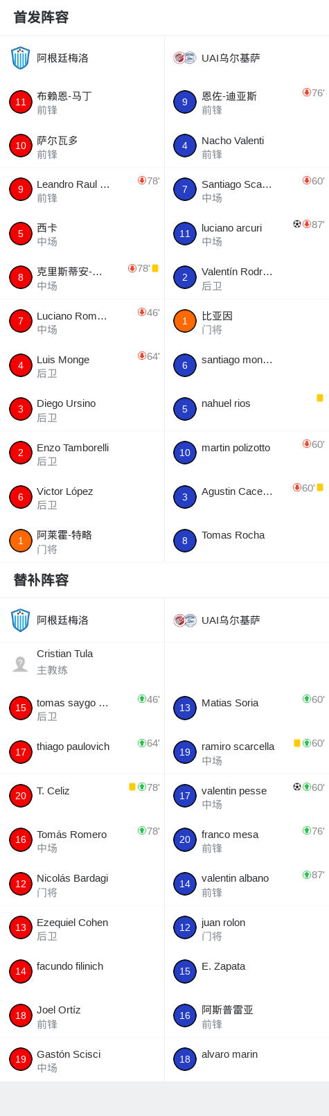第61分钟,UAI乌尔基萨球员luciano arcuri打入一球。